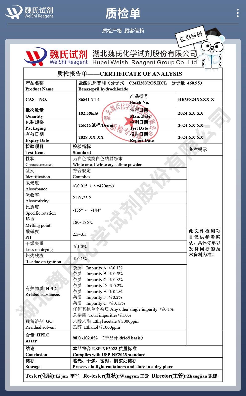 - 盐酸贝那普利86541-74-4 现货供应高纯