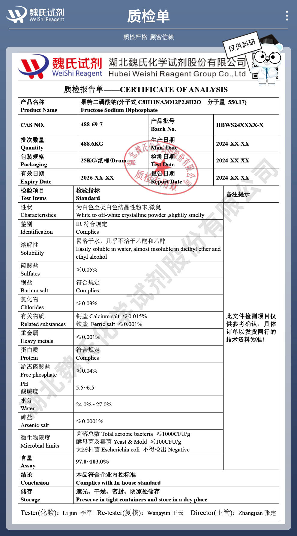 魏氏化学试剂采用ERP系统和试剂商城,为国内外科研机构客户提供及时完善的产品技术服务。公司奉行以“质量为生命,科技为先导,创新求生存,诚信为本”的企业宗旨,坚持“团结拼搏,追求卓越,精益求精,合作发展”的企业理念,诚挚与国内外同仁精诚合作,互利互惠,携手共赢。
