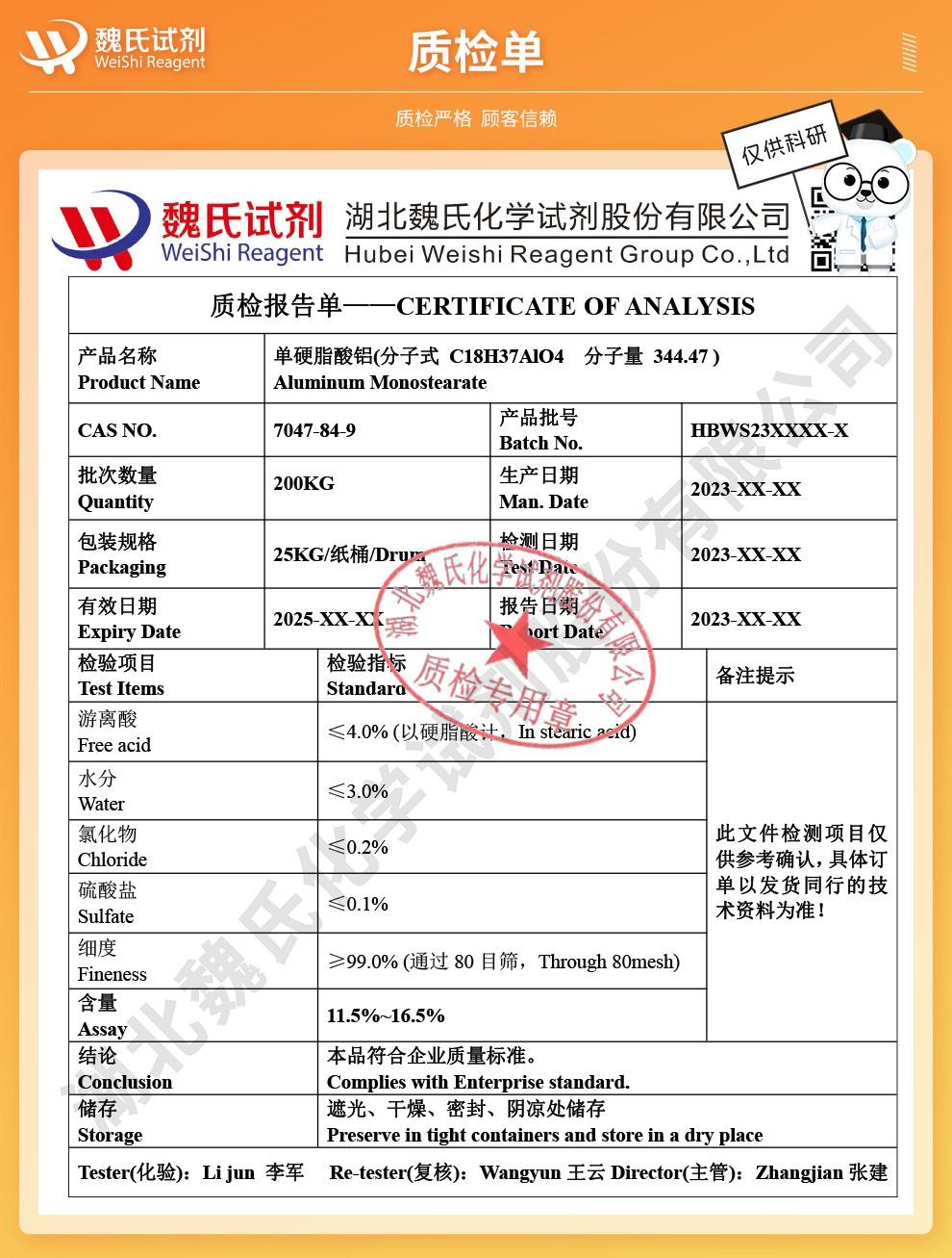 - 药用辅料级单硬脂酸铝,1kg25kg,药典备案,有质检单