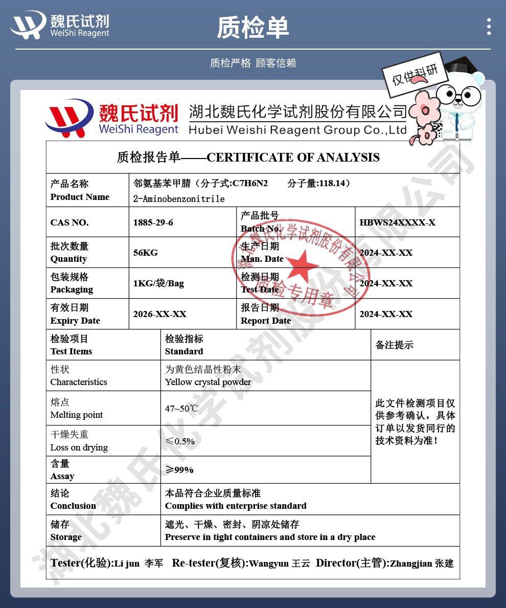 魏氏化学 邻氨基苯甲腈—1885-29-6 科研试剂