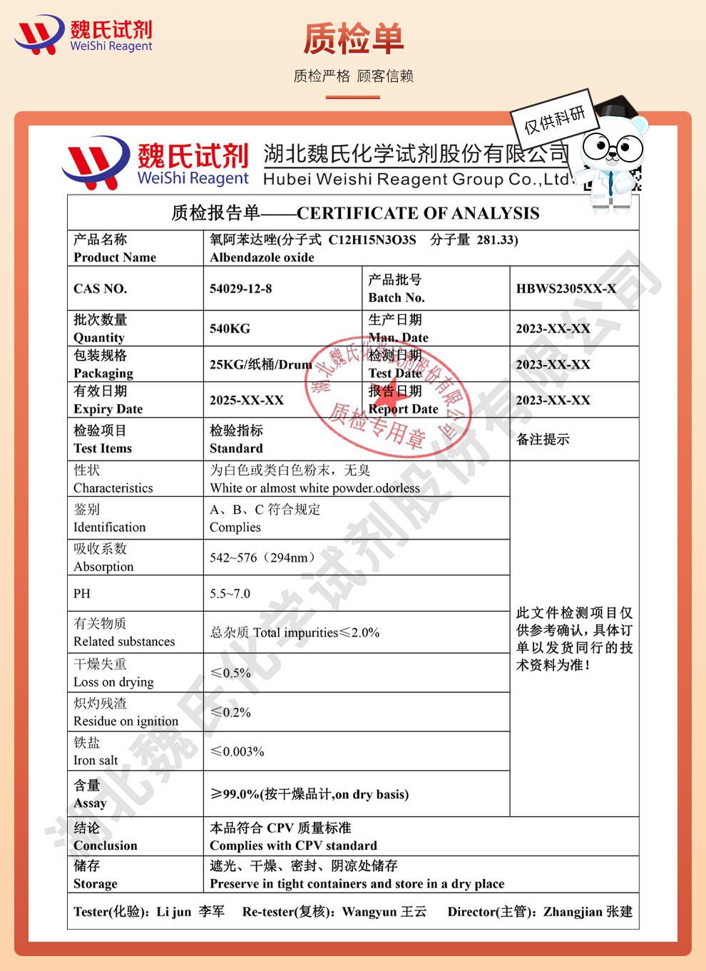 - 氧阿苯达唑 阿苯达唑亚砜 54029-12-8