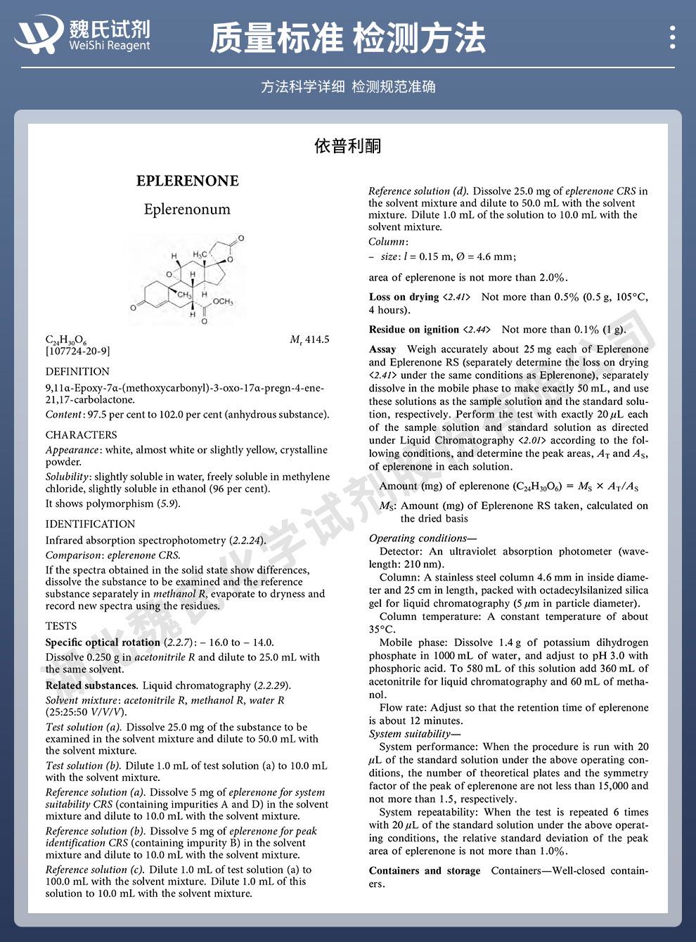 - 依普利酮;107724-20-9 为白色或类白色结晶