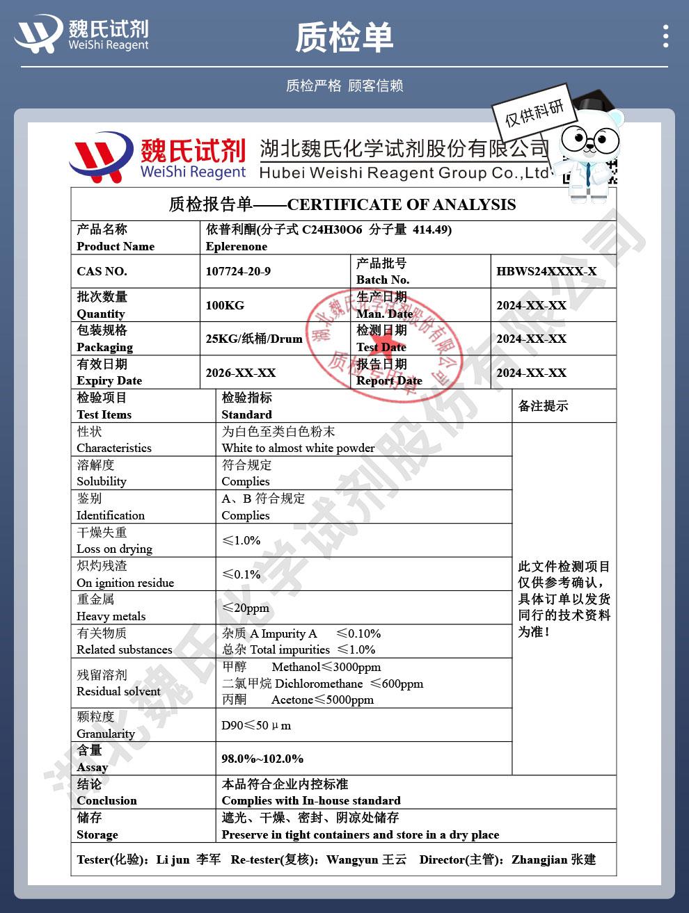 - 依普利酮,107724-20-9,有机原料;医用原料,湖北源梦