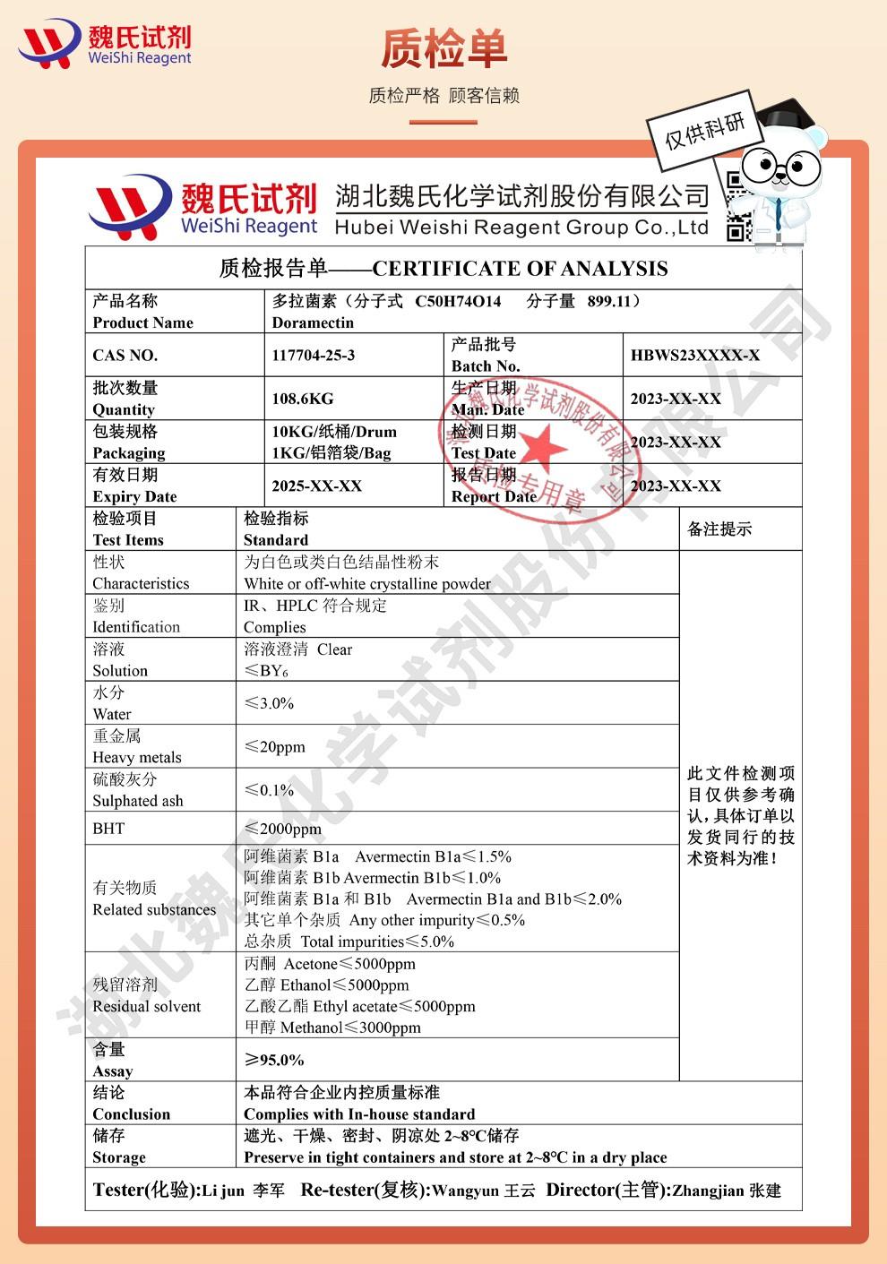 - 多拉菌素 117704-25-3 维斯尔曼生物主营现货 98%含量 13419635609
