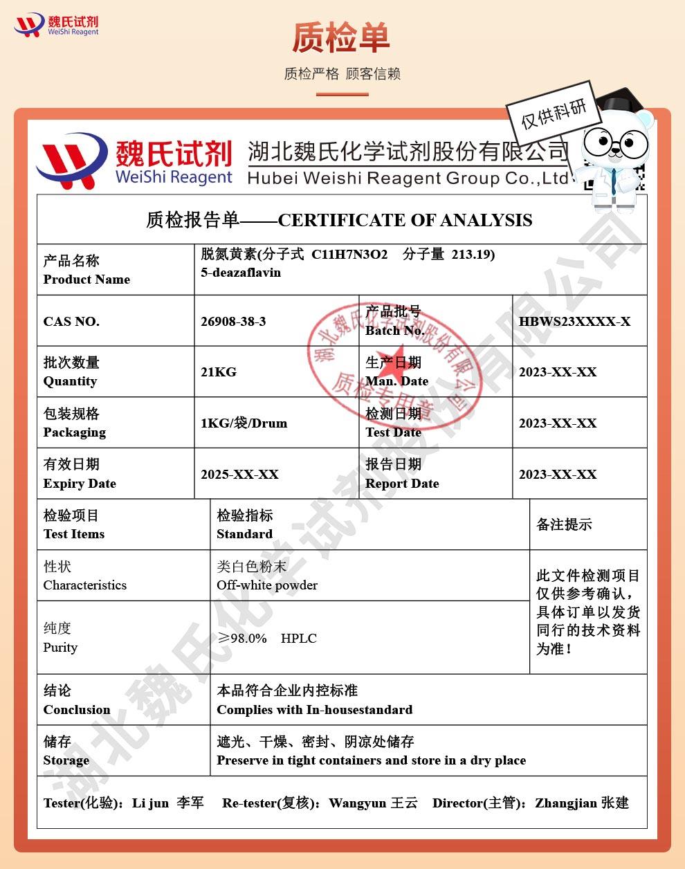 - 脱氮黄素 26908-38-3 含量99% 湖北威德利 陈明 13339985473同微