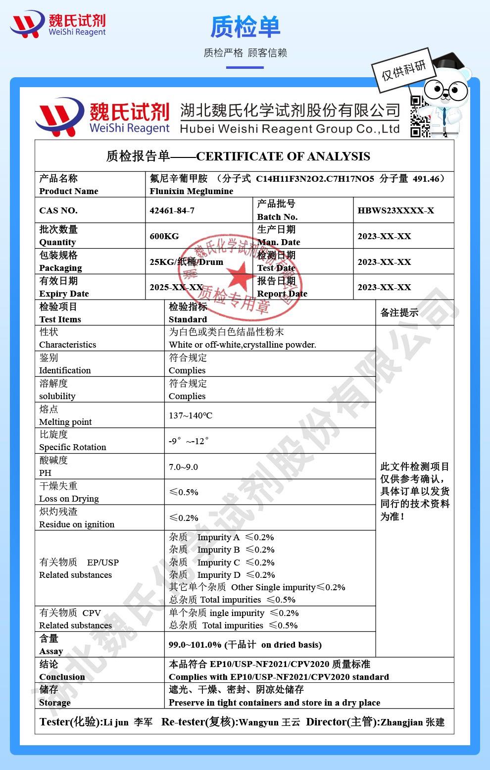 - 氟尼辛葡甲胺原料 兽用类抗炎镇痛药