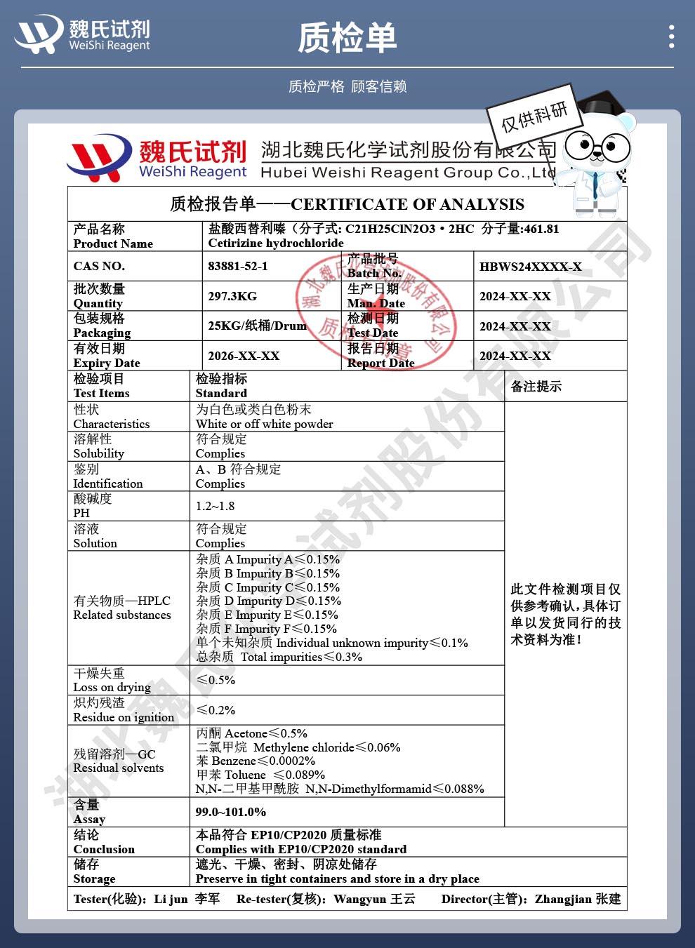 盐酸西替利嗪——83881-52-1 魏氏试剂