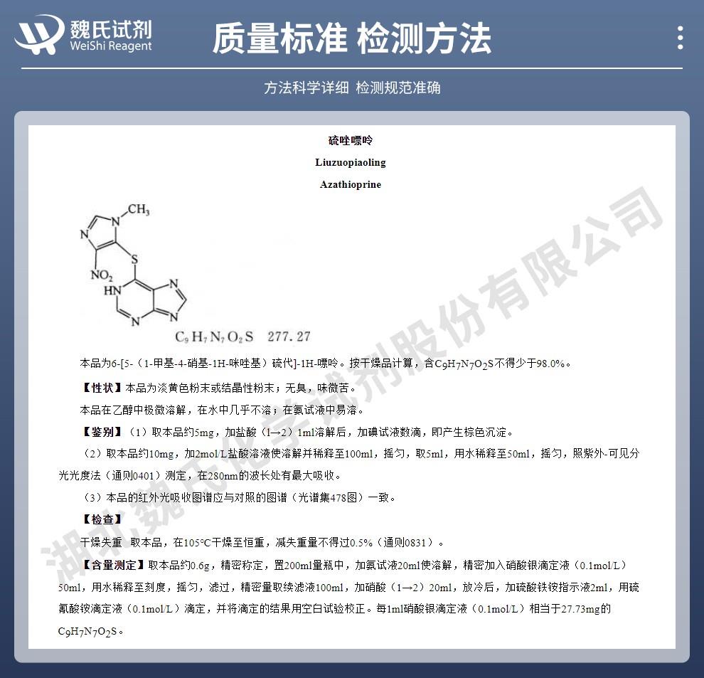 - 硫唑嘌呤 446-86-6 维斯尔曼生物出口|科研|检测方法