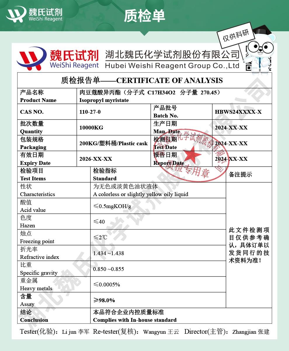 肉豆蔻酸异丙酯—110-27-0 魏氏试剂 Isopropyl myristate
