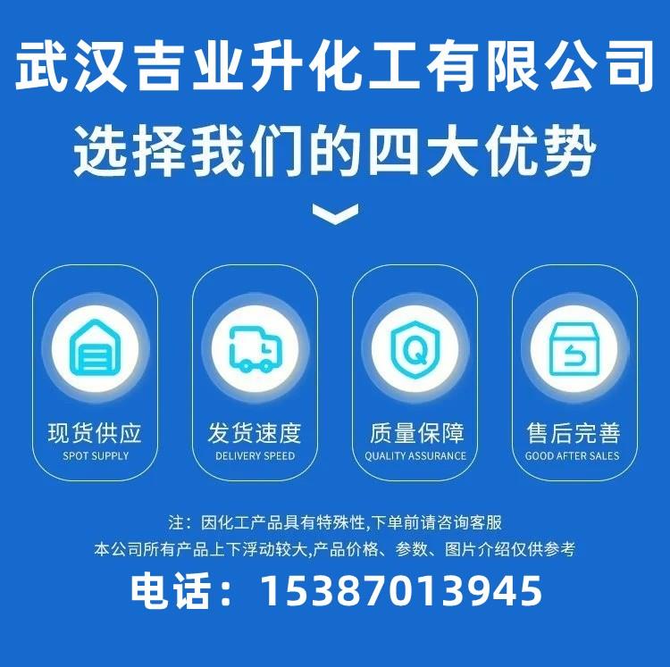 武汉吉业升化工有限公司位于武汉市黄陂区盘龙城经济开发区,专业从事无机化工、有机化工、香精香料、食品添加剂、精细化工。公司产品大量销往湖北、湖南、江西、安徽、河南、河北、江苏、云南、广东、广西、上海。为了更好的为广大客户服务,公司设有专门的售后服务部,您对产品有任何的疑问,我们都会为您细心解答。