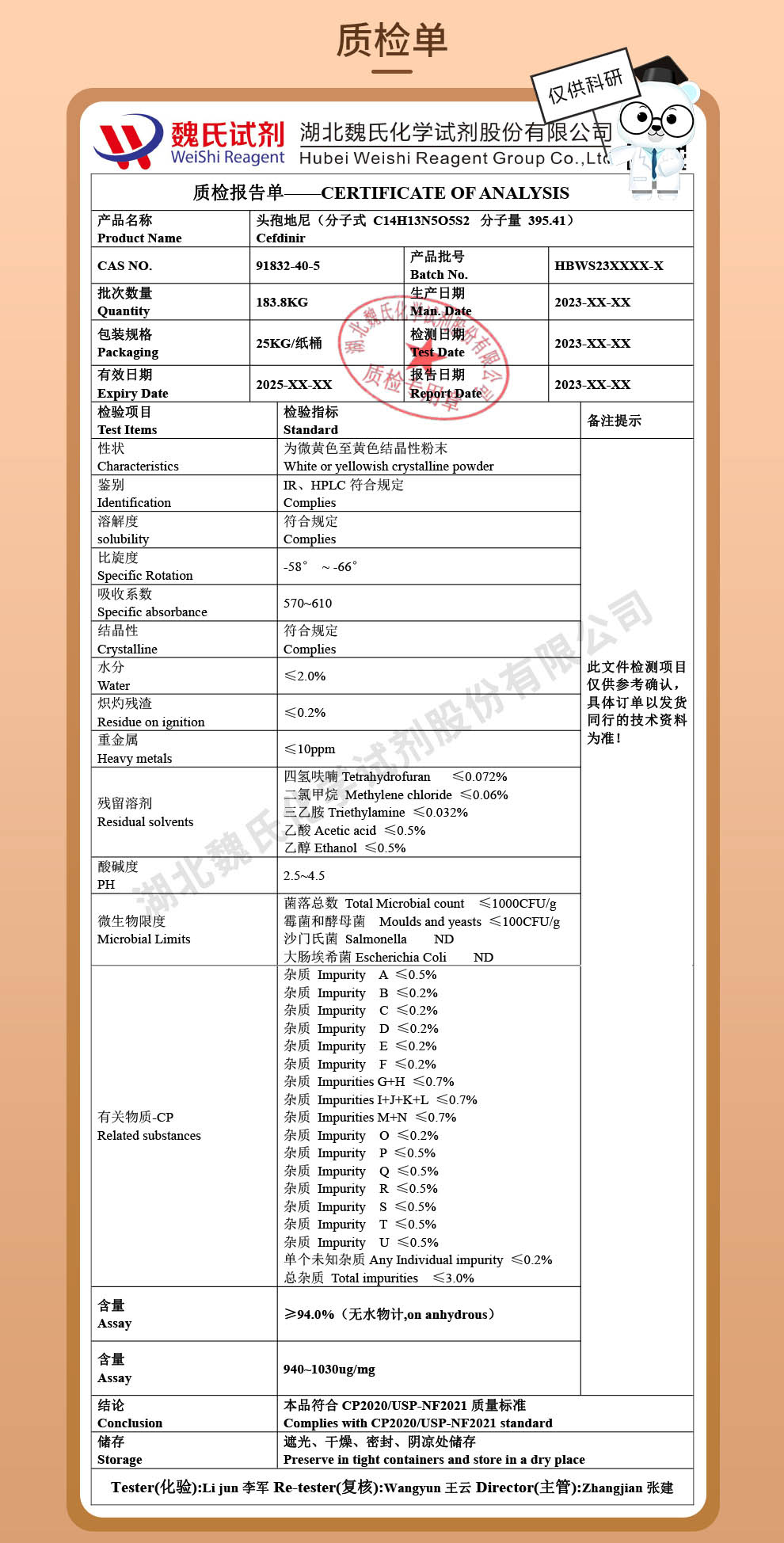 - 头孢地尼91832-40-5;EP/USP药典标准;湖北研科时代科技-“研”无止境;“科”学创新!检测图谱;MSDS等技术支持