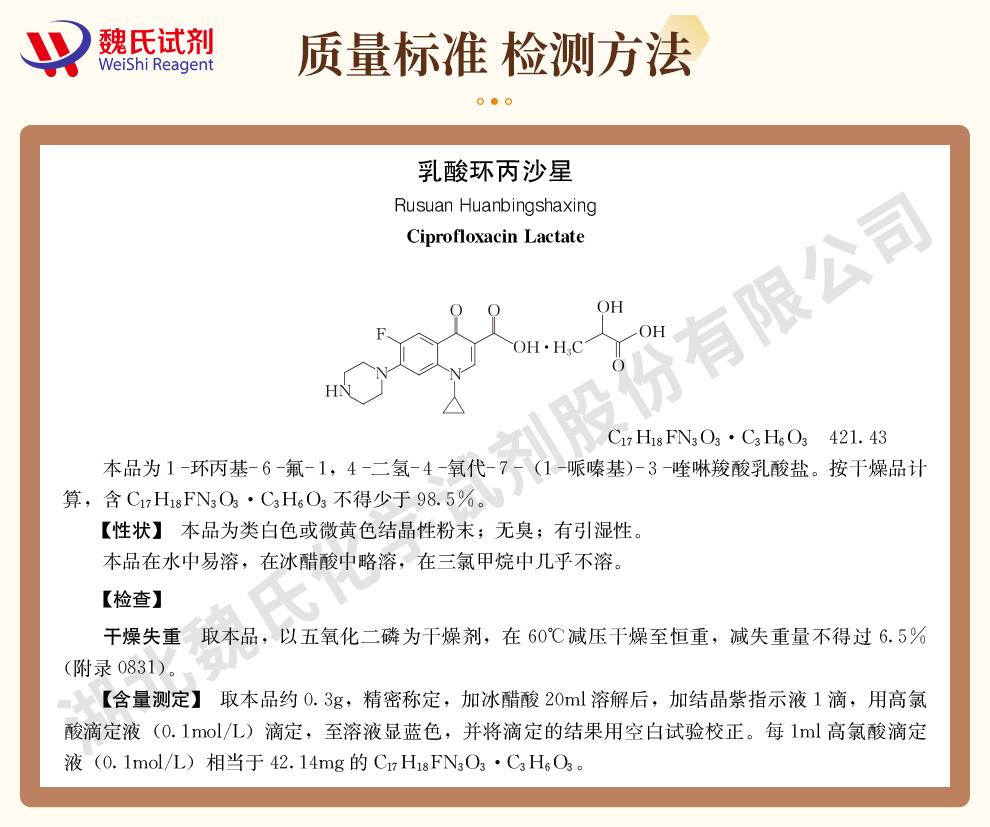 - 高纯度乳酸环丙沙星,实验室级原料