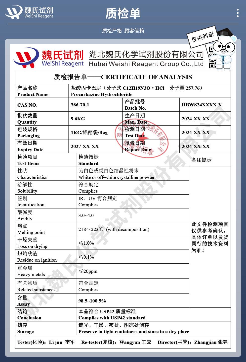 盐酸丙卡巴肼相关厂家报价 更多