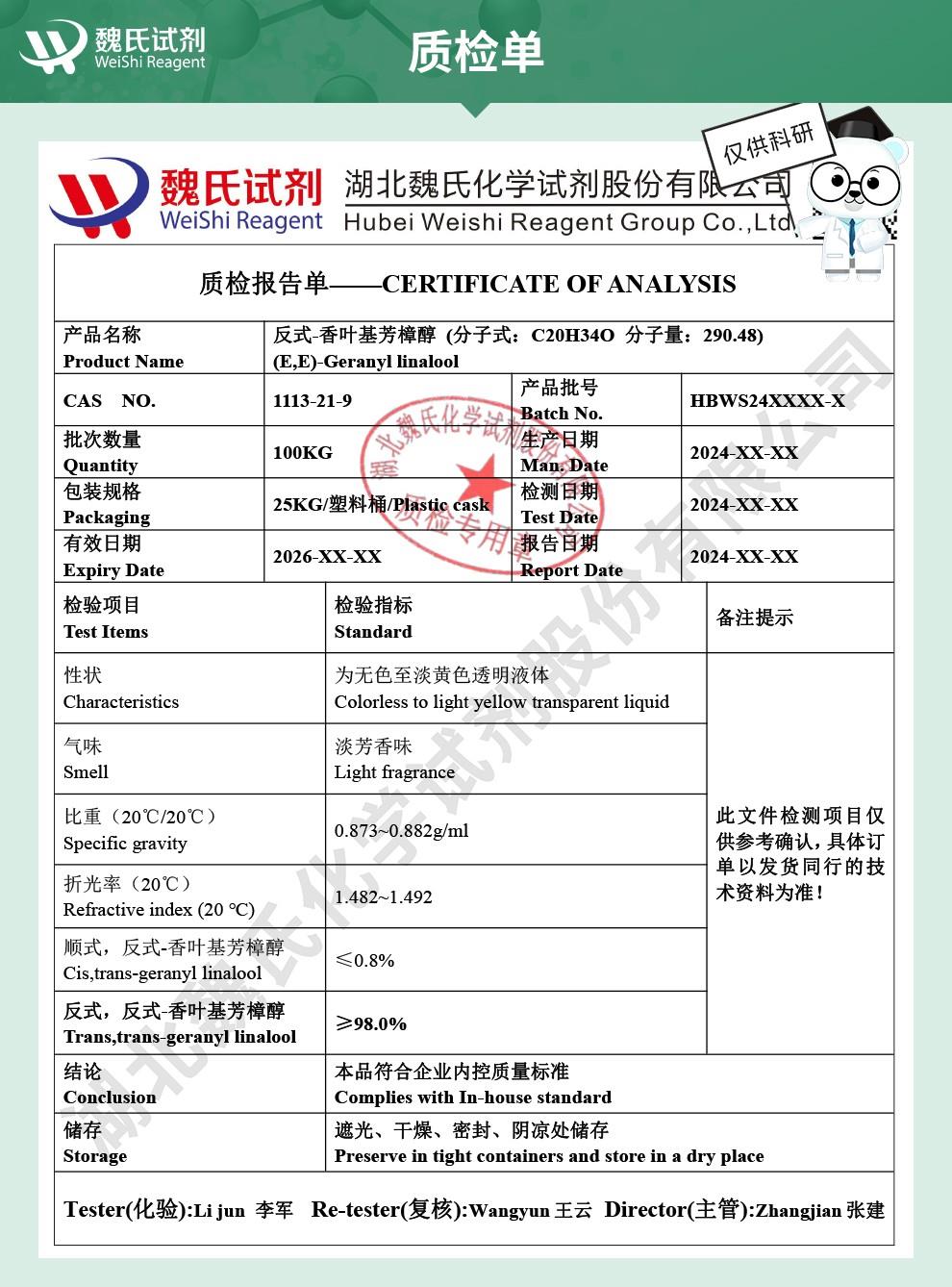 - 1113-21-9 香叶基芳樟醇;反式香叶基芳樟醇 -医药中间体-检测方法 -科研试剂-图谱资料-实验室材料-鼎信通李杰