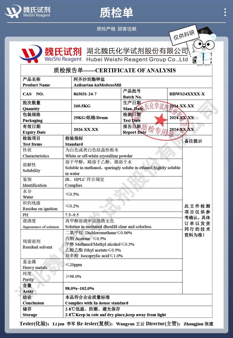 - 阿齐沙坦酯钾盐 高纯精品 试剂级 武汉鼎信通药业 丁亮 158-7172-2230