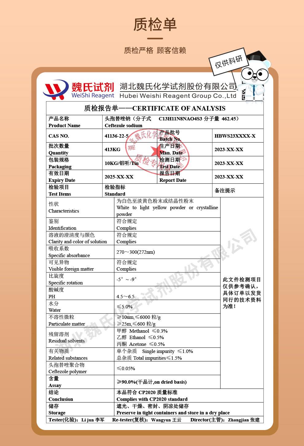 - 生物试剂头孢替唑钠 41136-22-5 威德利杂质对照品报价