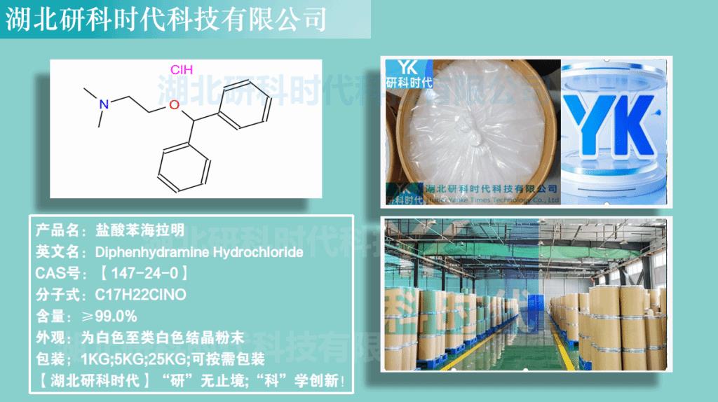盐酸苯海拉明147-24-0;纯度≥98.0%中间体;湖北研科时代科技-“研”无止境;“科”学创新!检测图谱;MSDS等技术支持
