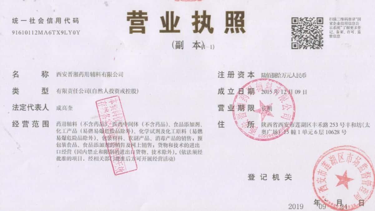 西安晋湘药用辅料有限公司地处千年文明古都-西安,是一家以经销国产和进口药用辅料为主的专业化公司,目前已拥有一支业务精干的销售团队,与国内多家知名药辅生产企业建业了业务合作关系,并建立了售后体系。