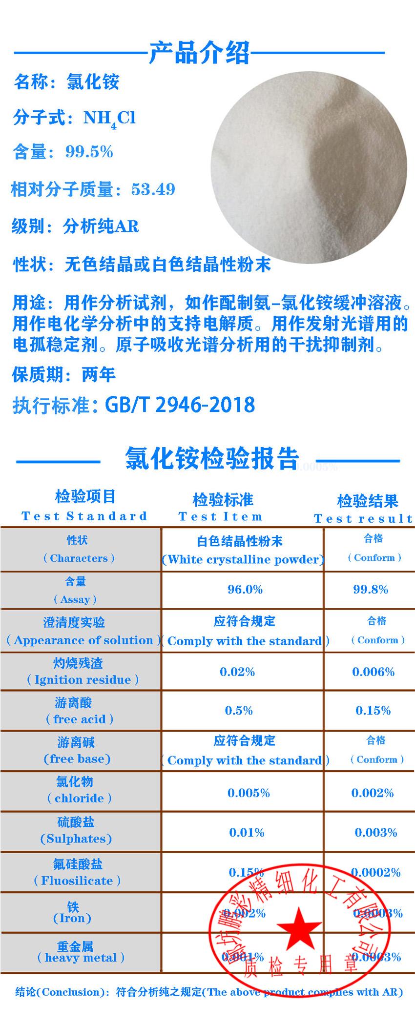 - 氯化铵 12125-02-9 用于合纤粘度的检验
