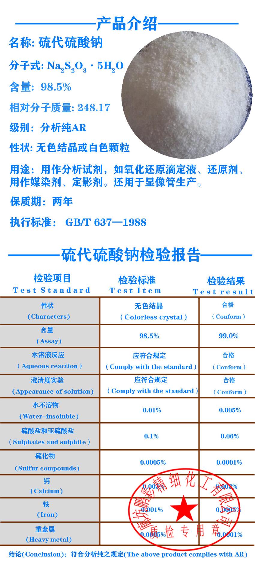 - 硫代硫酸钠五水合物;大苏打