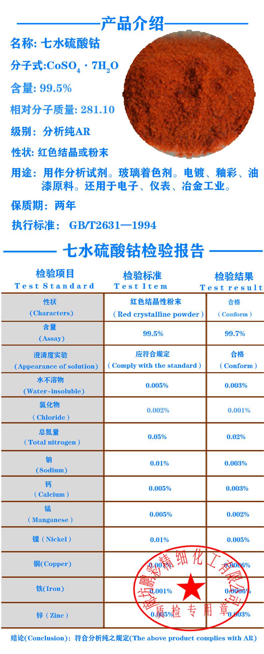 - 七水硫酸钴 钴含量20.8%