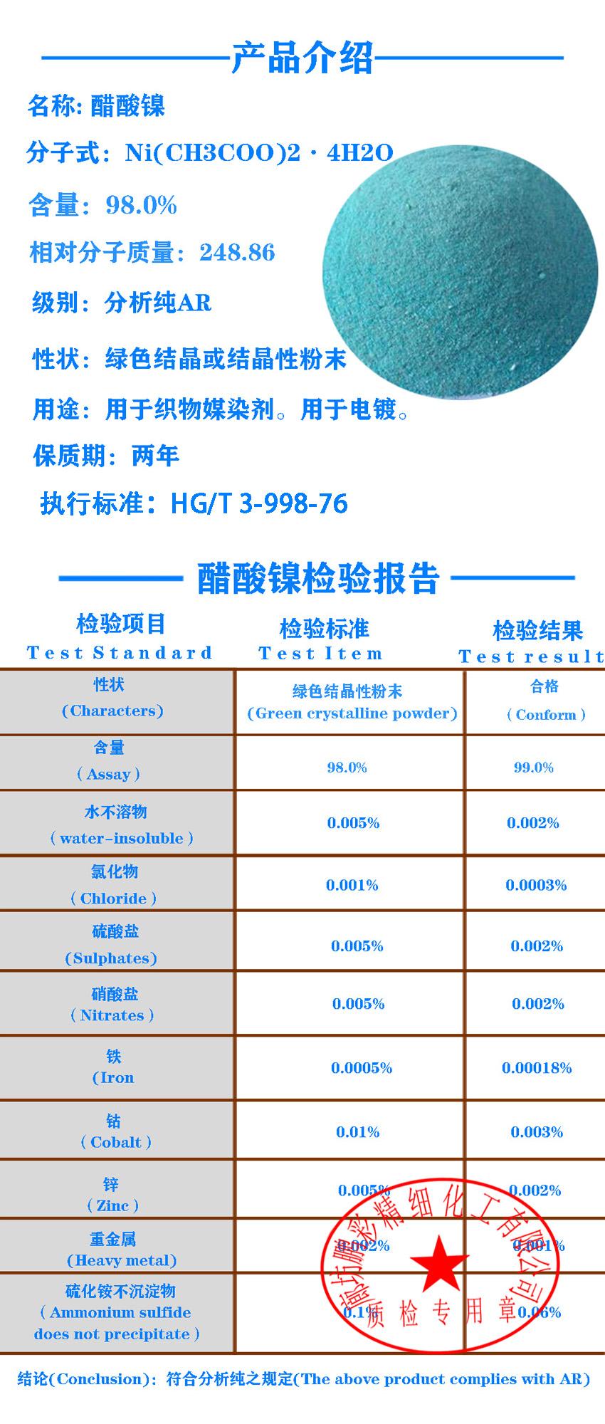 四水醋酸镍相关厂家报价 更多