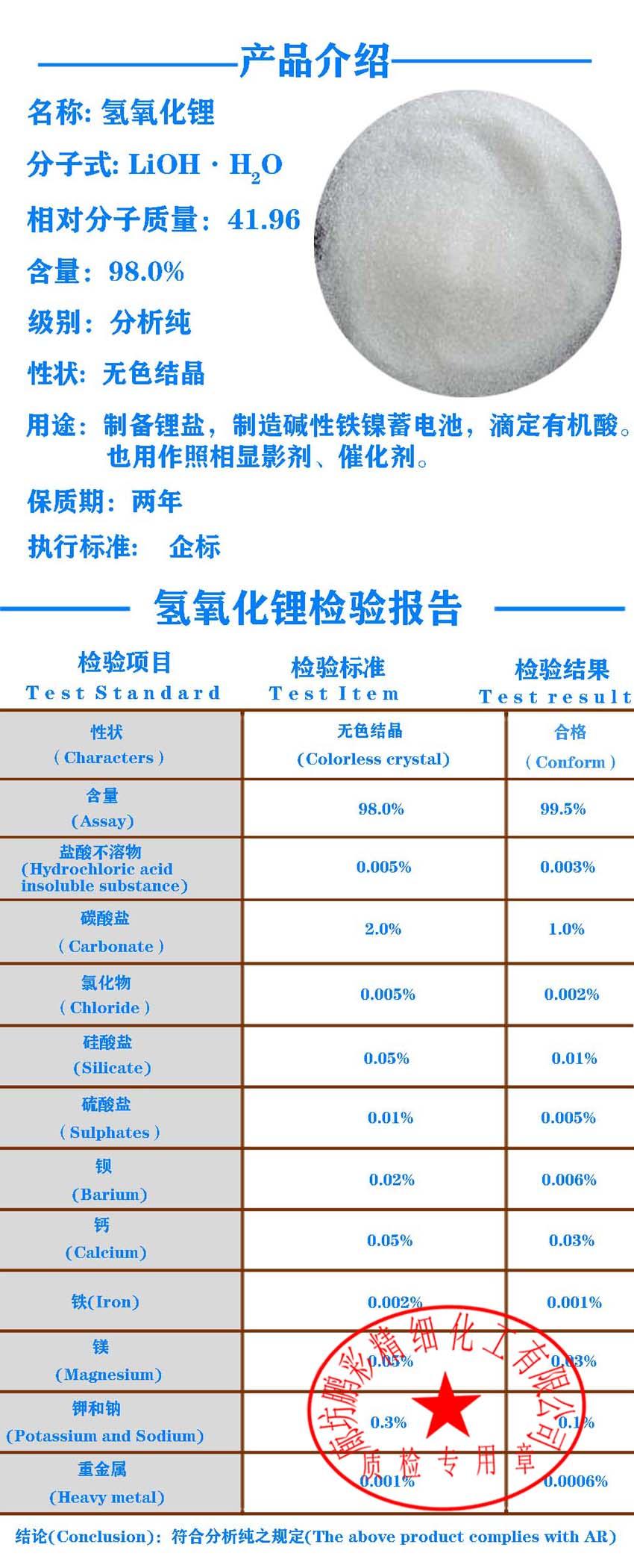分析纯氢氧化锂