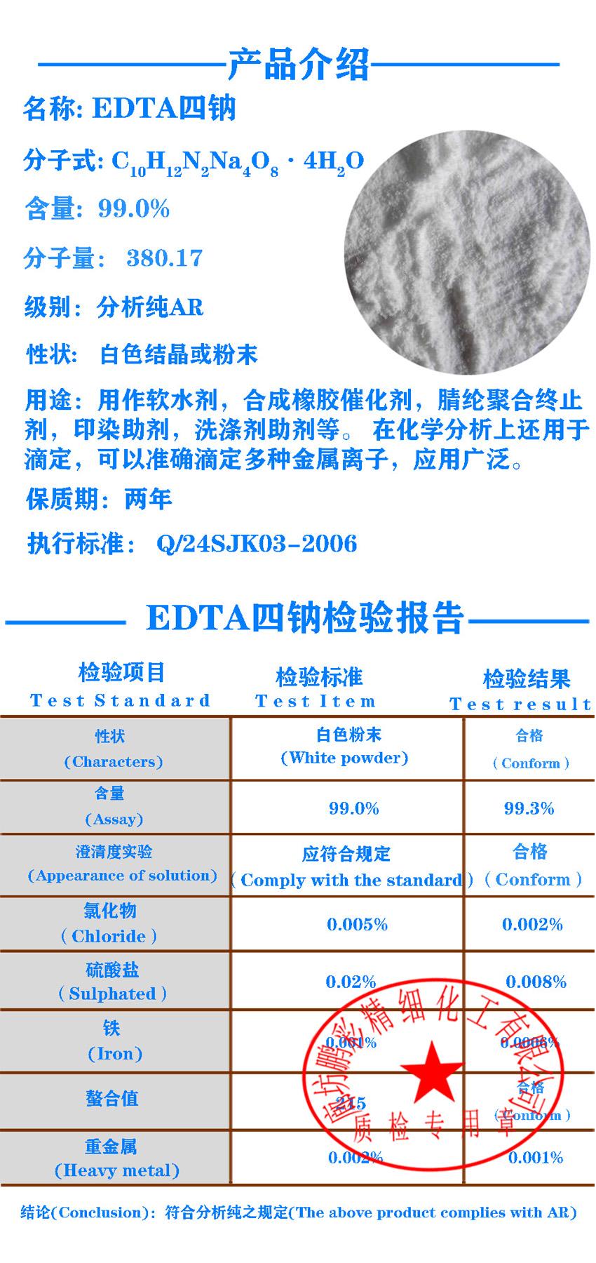 - EDTA四钠 64-02-8 络合剂螯合剂掩蔽剂