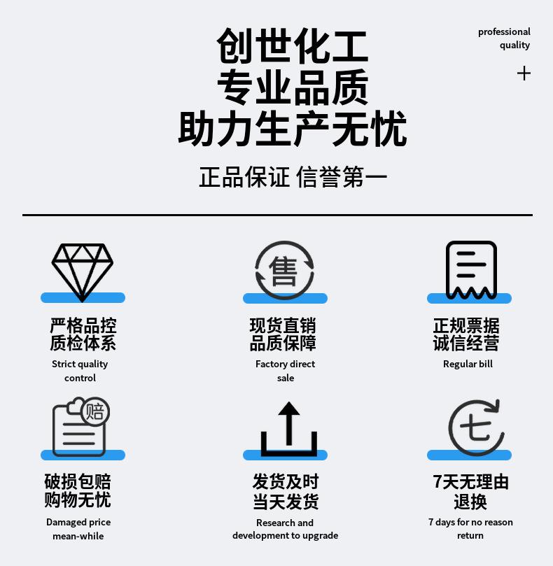 济南创世化工有限公司始建于2011年,公司主要代理燕山石化、吉林石化、抚顺佳化、岳阳石化、扬子石化、齐鲁石化、四川宜宾等多家大型石化公司的产品;进口产品也很多,企业产品调配;公司自有运输车辆,并与多家物流合作,根据情况为您配送货物,运输网络遍及全国,全国发货无盲区。主要的服务对象集中在水处理厂、润滑油厂、汽车生产厂、印染厂、电厂、机械厂、制冷设备厂、防冻液.不冻液生产制造厂,医药厂,树酯厂等。