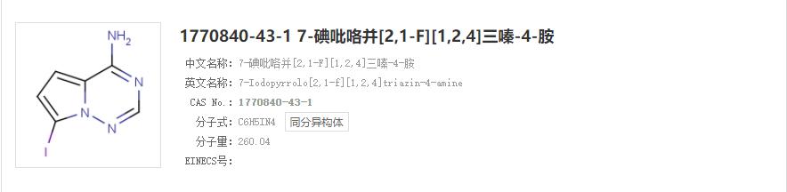 - 1770840-43-1;7-碘吡咯并[2,1-f][1,2,4]三嗪-4-胺