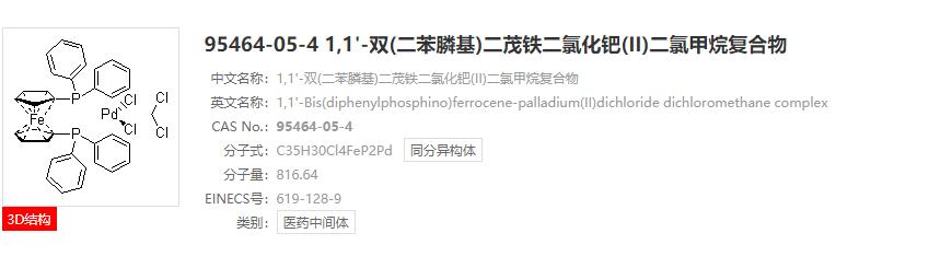 - [1,1'-双(二苯基膦)二茂铁]二氯化钯二氯甲烷络合物 95464-05-4