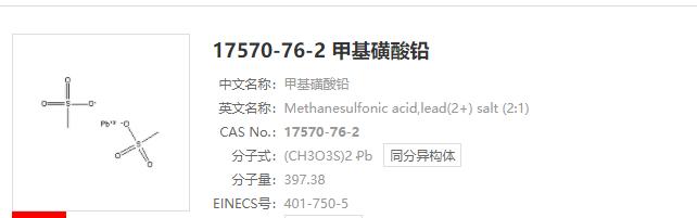 - 甲基磺酸铅 17570-76-2 应用介绍