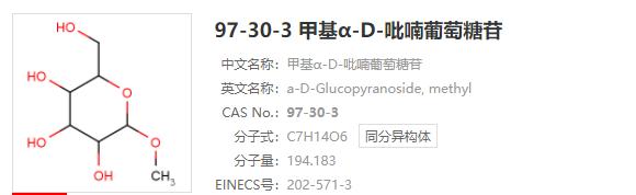 - 共聚合剂及树脂调节剂 α-甲基葡萄糖甙;alpha-甲基葡萄糖甙 alpha-D-Methylglucoside 97-30-3