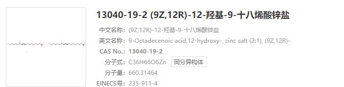 - 蓖麻油酸锌,13040-19-2,zinc diricinoleate